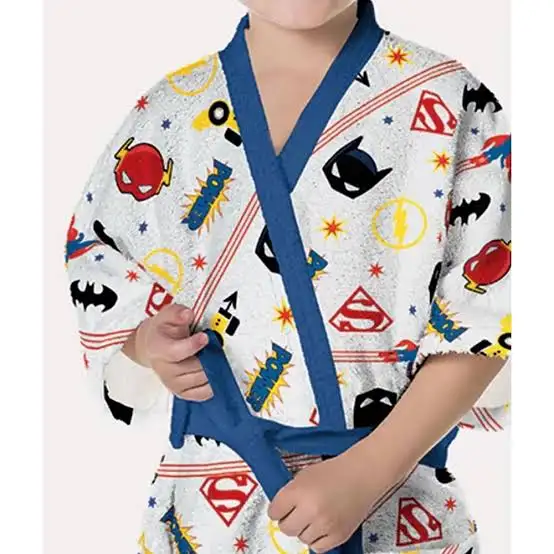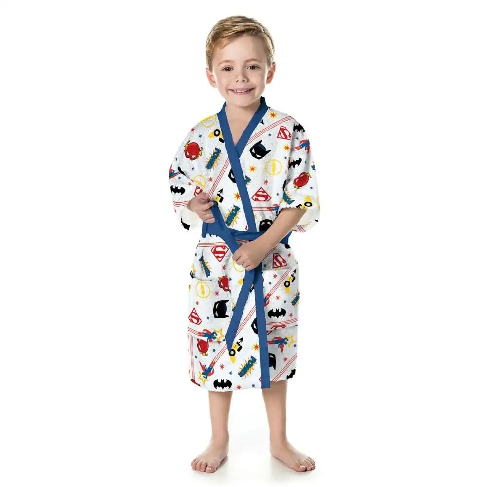 O roupão felpudo da coleção Liga da Justiça estampa os símbolos dos heróis que formam essa super poderosa equipe, sempre prontos para mais uma aventura no combate ao crime.