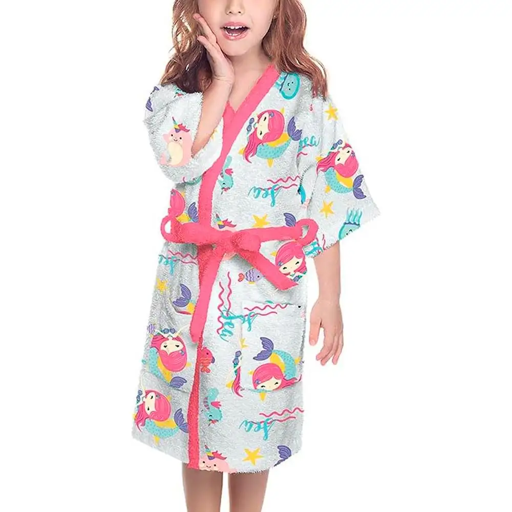 Roupão Infantil Felpudo Quimono Oceano Colorido Lepper. O roupão felpudo da coleção Oceano ilustra a temática Delicada aos Oceanos, junto a elementos de Sereia e outros animais marinhos. Ele possui o jeito Lepper, com a exclusiva qualidade da felpa que não desfia, possui ótima absorção e fica mais m...